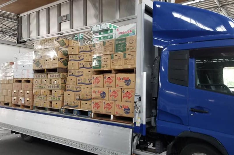 広大な面積を誇る大田市場にて、早朝より2台のフォークリフトを使いパレット積みや、パワーゲートを使用し、確実に丁寧・早く荷積みをします。